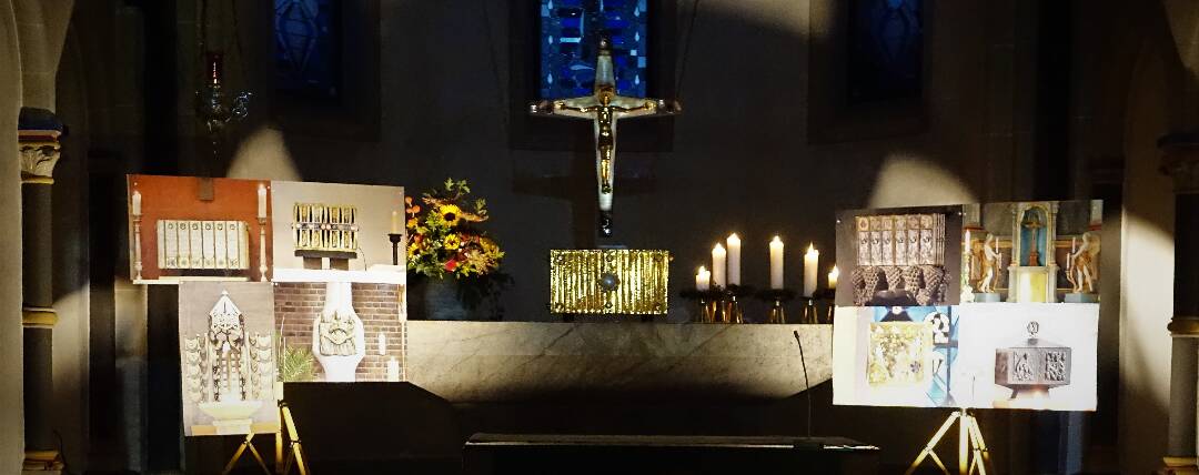 Die Bilder der Tabernakeltüren neben unserem eigenen Tabernakel wurden regelrecht zu einem Quiz. Hier mussten die meisten überlegen zu welcher der Gemeinden welcher Tabernakel gehört. Und für die Kinder gab es ein Schlüssel/ Schloss- Memory.